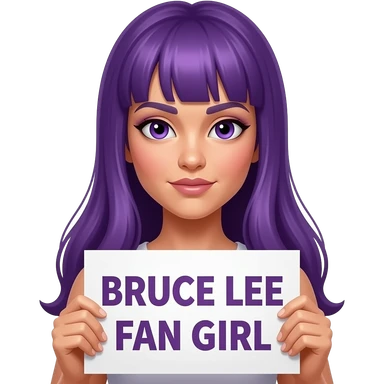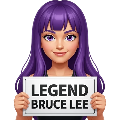 girl with long purple hair holding a Legend BRUCE LEE sign emoji