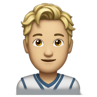 Un jeune homme avec un visage assez fin, yeux marron, peau beige, fine barbe et coiffure en dégradé avec cheuveux en haut légèrement sur le côté emoji