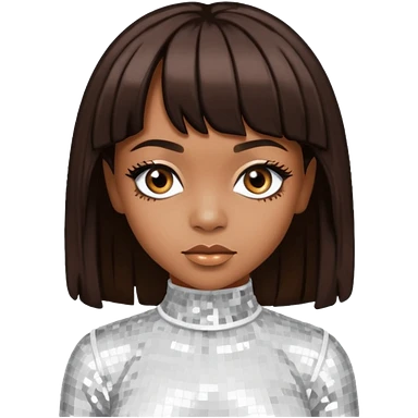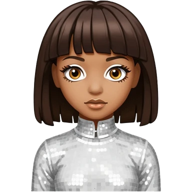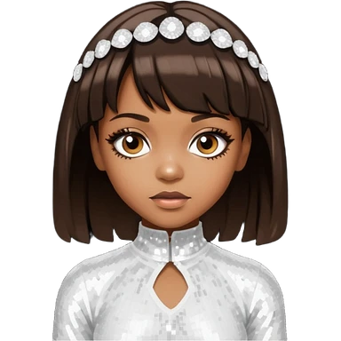 Left Eye from TLC with medium dark brown hair, ivory sequin outfit emoji
