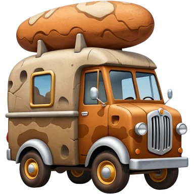 Prehistoric-style tall rocky Flintstones moving van with rock tires emoji
