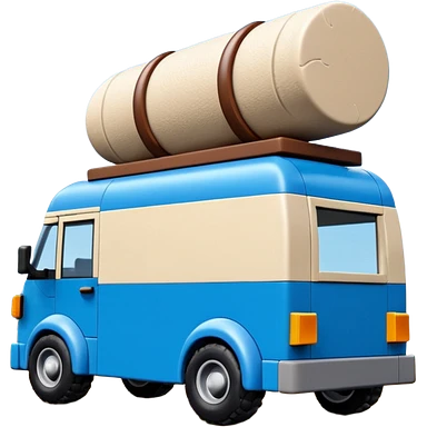Prehistoric-style blue tall rocky Flintstones moving van with rock tires emoji