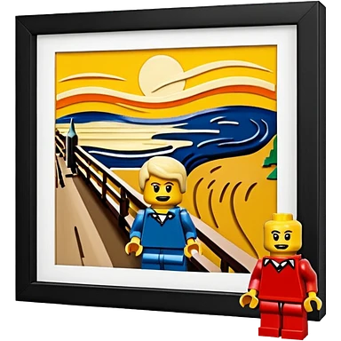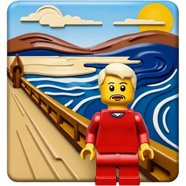 Edvard munch the scream landscape in Lego with a minifig emoji