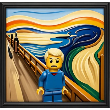 Edvard munch the scream landscape in the style of Lego with a minifig emoji