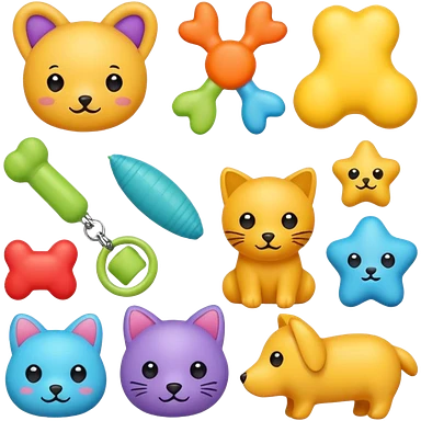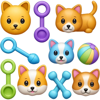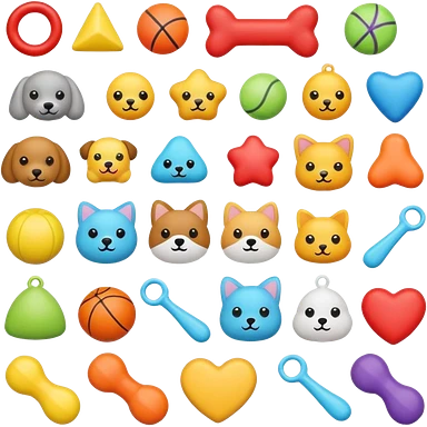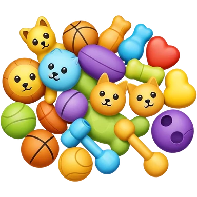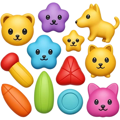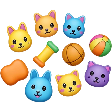 Colorful toys scattered together - teddy bear, rubber duck, toy blocks, ball, and action figures emoji