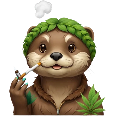 a otter smoking a joint surrounded by marijuana fumes emoji