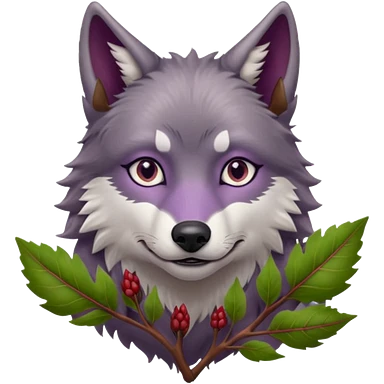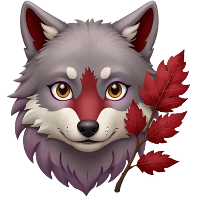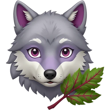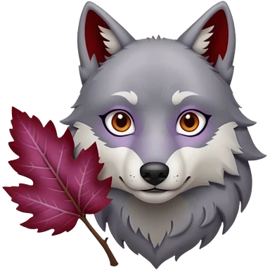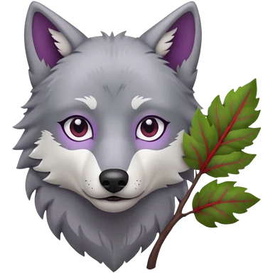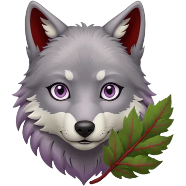 A wolf with lilac gray eyes and holding a weirwood leaf emoji