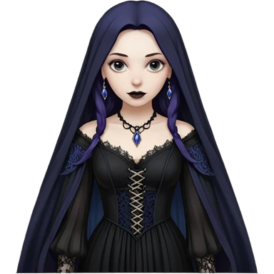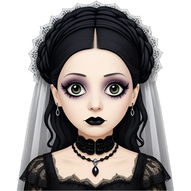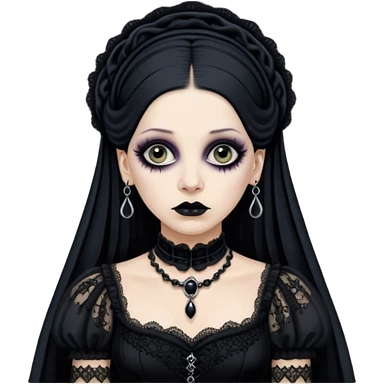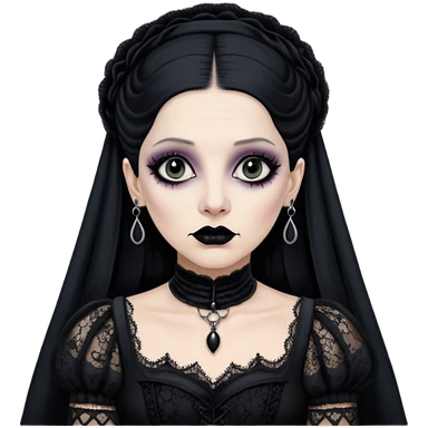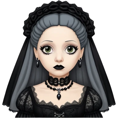 Lena Lovich as a gothic sorceress in huge dirty lace emoji | AI Emoji Generator