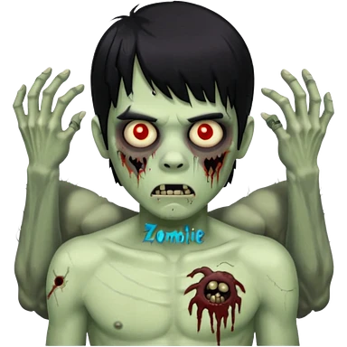 Menino de cabelo liso preto com franja zumbi sem camisa emoji