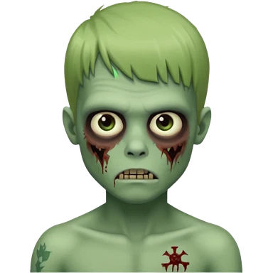 Menino de cabelo liso com franja zumbi sem camisa emoji