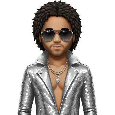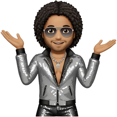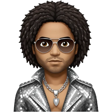 Lenny Kravitz with long dark brown hair, silver sequin outfit emoji
