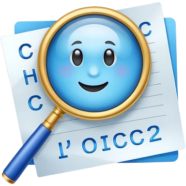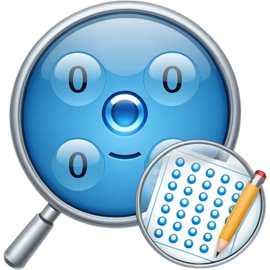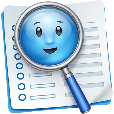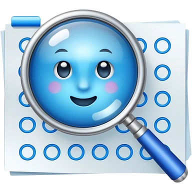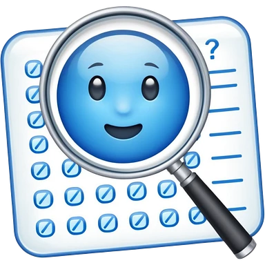 lente di ingrandimento foglio con scritte a risposte multiple blu emoji