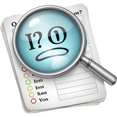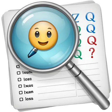lente di ingrandimento foglio con scritte a risposte multiple emoji