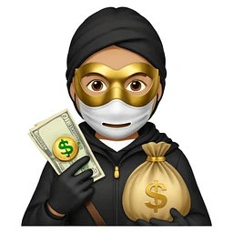 Genera un ladrón de frente con una bolsa de dineros emoji