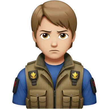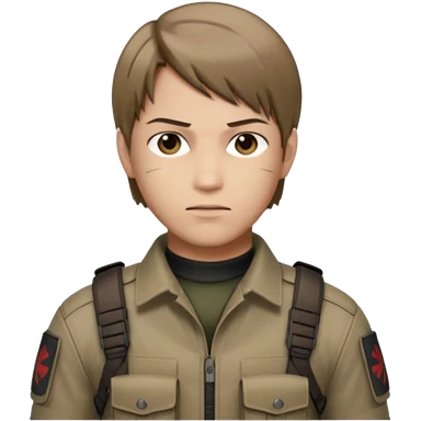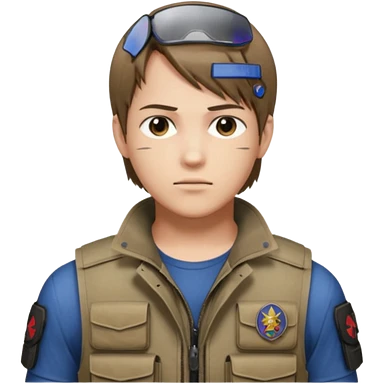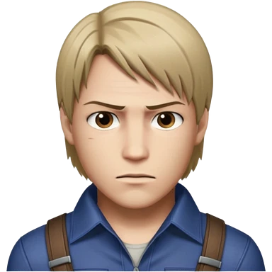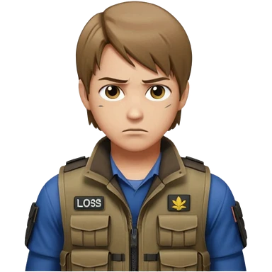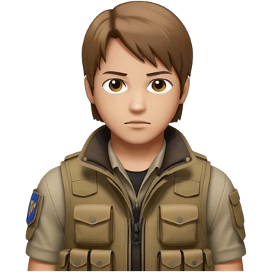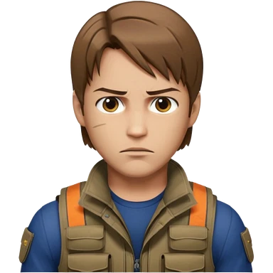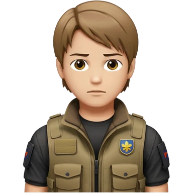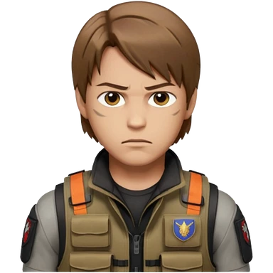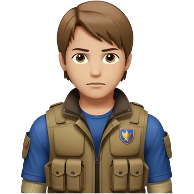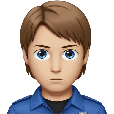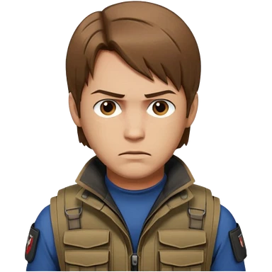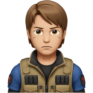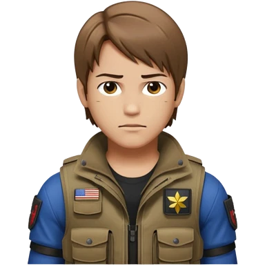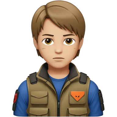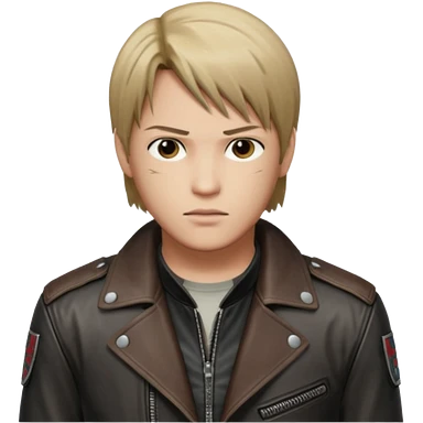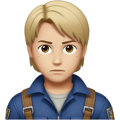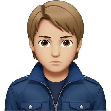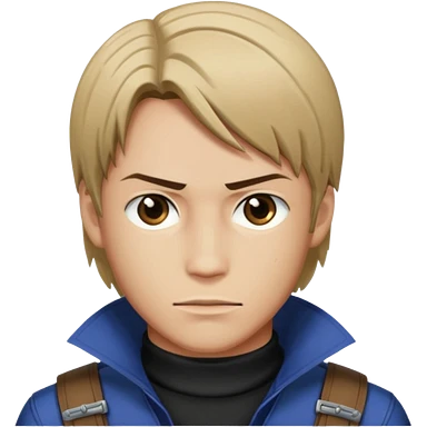 Leon Kennedy from resident evil 4 remake in sheepskin coat and black t-shirt blue eyes clean-shaved emoji