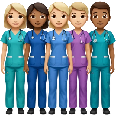 Nurses of different ethnicities in various color scrubs emoji