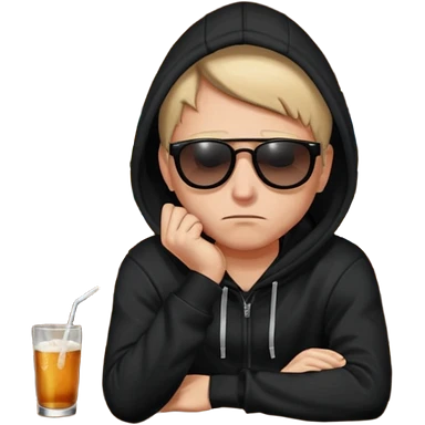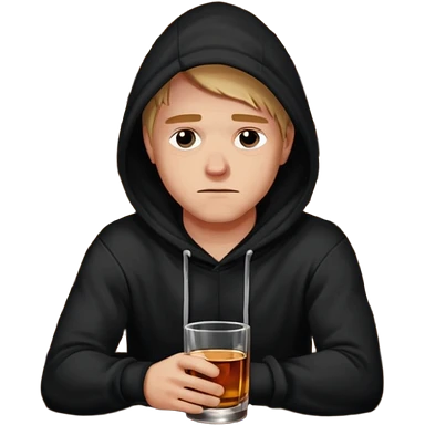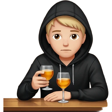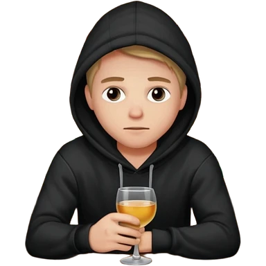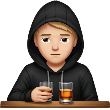 Caucasian in black hoodie sitting sad at bar emoji