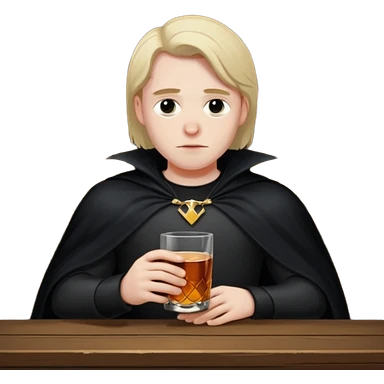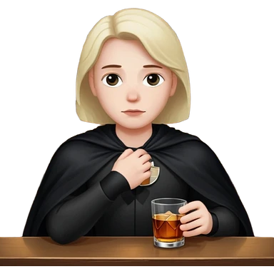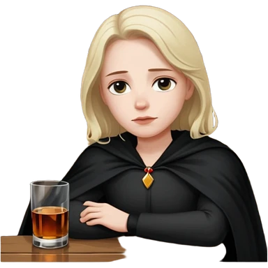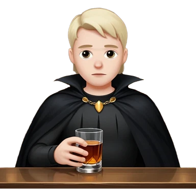 Caucasian in black cape sitting sad at bar emoji