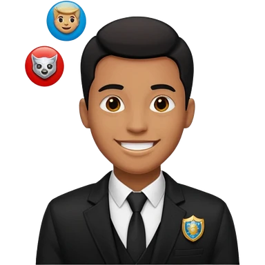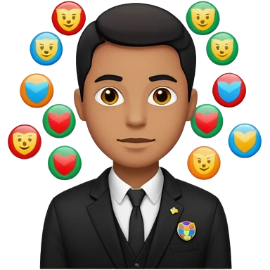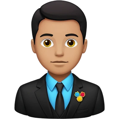 A MAN WEARING A BLACK BALZER AND HE HAVE SOME BADGES ON HIS BLAZER emoji