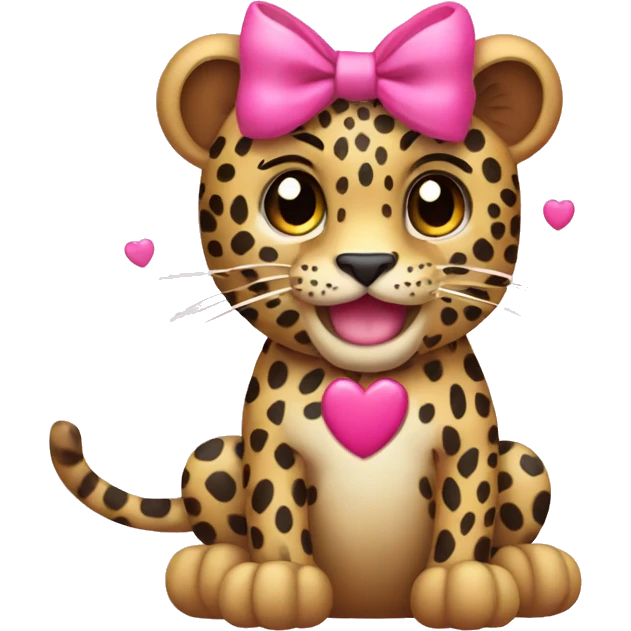 leopard with a bow on its head holding a pink heart in its paws emoji | AI Emoji Generator