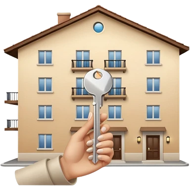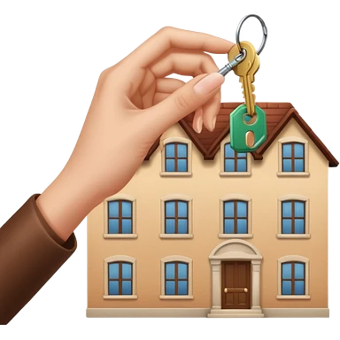 emoji de mano sujetando unas llaves con el fondo de un departamento emoji