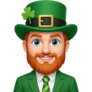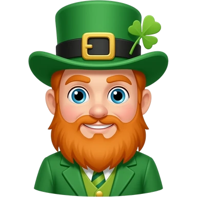 leprechaun looking up, and giving a thumbs up. on his left hand, he is holding his waist. change the hat band with orange band and a red belt. change the facial hair to white. on his mouth, he is smoking a red pipe. emoji