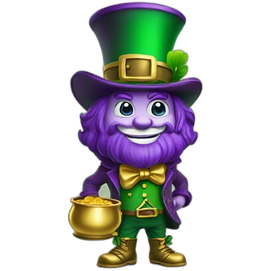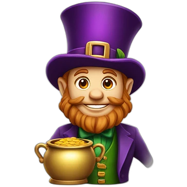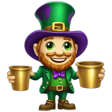 A leprechaun green and purple cartoon character with a gold pot to my company ProsperOn emoji