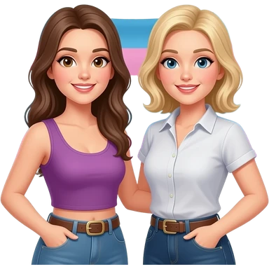 Lesbian women wearing lesbian flag emoji