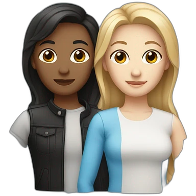Lesbian couple in a loving embrace. One white with black straight hair and blue eyes. One white with brown straight hair and blue eyes. emoji