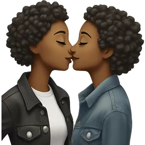 Lesbian couple leaning in for a kiss. One person should be white in the other one should be black. emoji | AI Emoji Generator