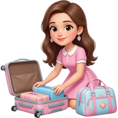 preparing for a trip/ let it be really girly, a girl packing, the girl has brown long hair emoji
