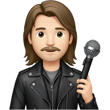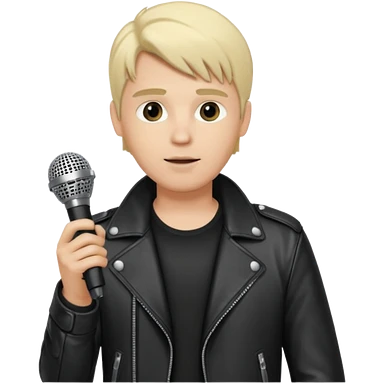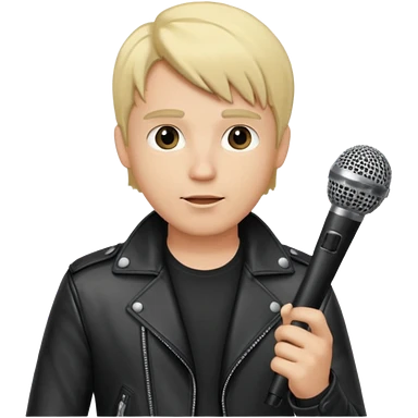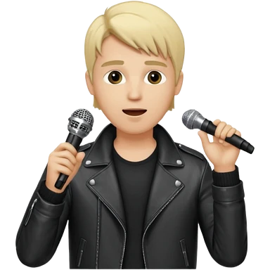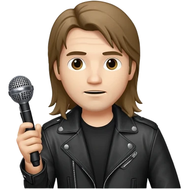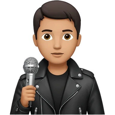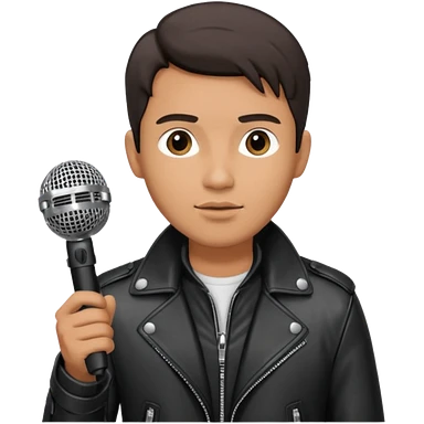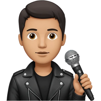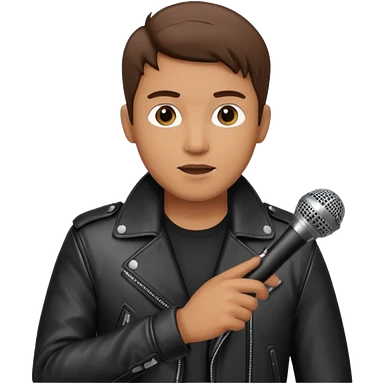 A cool male singer in leather jacket, singing into a standing microphone. emoji