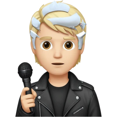 lether jacket curly yellow hair woman holding microphone emoji | AI Emoji Generator