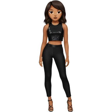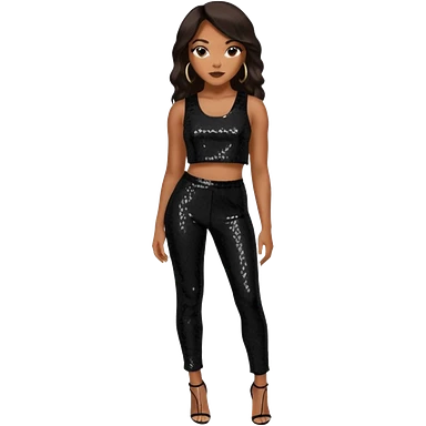 LeToya Luckett with long dark brown hair, black sequin crop top, black sequin pants emoji