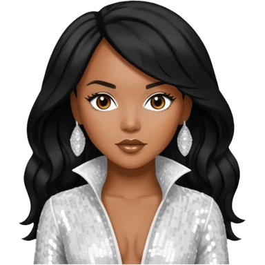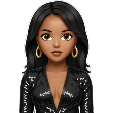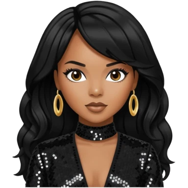 LeToya Luckett with long black hair, gold sequin outfit emoji | AI Emoji Generator