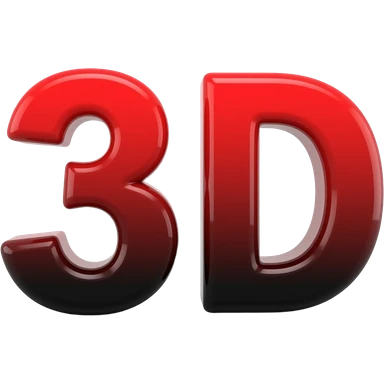 crea una emoji de letras que diga 3D en letras rojas con degradado negro emoji