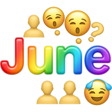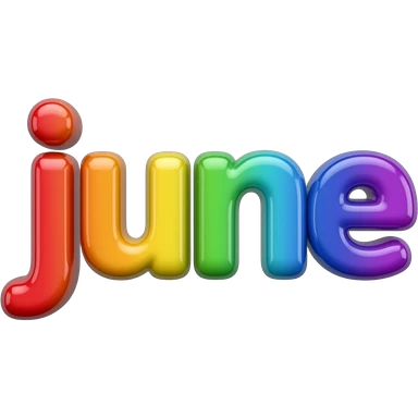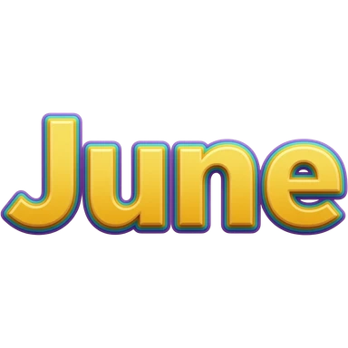 name "june" in yellow, 3D style typography lettering, each color of the rainbow as a border outlined around each letter, isolated, 3d rendering, no emoji icons no emoji faces and must have no human figures emoji