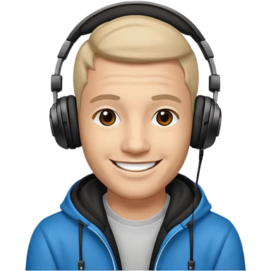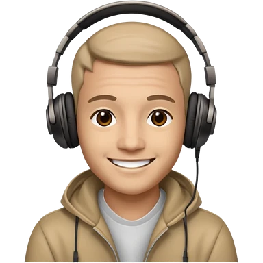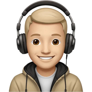 dj man white with baseball cap - rayban Sun Glasses 80s - brown hair - closed eyes with headphones on with musical note over head (listening to music ) - eyes closed no glasses - black hat musical notes floating around head - DJ DLG written on hat emoji