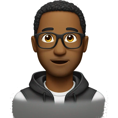 Emoji of a white man with short dark brown hair under a black baseball cap, wearing a black t‑shirt and 1980s‑style black Ray‑Ban rectangle sunglasses black lenses, with black musical notes floating around his head, word "DJ DLG" written on the hat emoji
