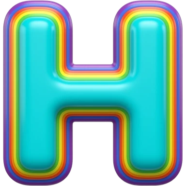 Letter "H" in bright turquoise, 3D style typography lettering, must have each color of the rainbow as an outlined borderaround the letter, isolated, 3d rendering, no emoji icons no emoji faces and must have no human figures emoji