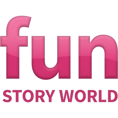 fun is small letter color pink and STORY WORLD is on bottom and is capital letter is color pink emoji