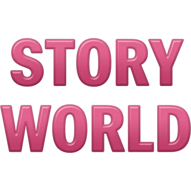 fun is on top and the small letter color pink and STORY WORLD is on bottom and is capital letter is color pink emoji