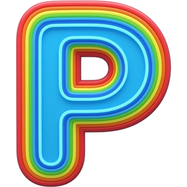 name "P" in neon blue, 3D style typography lettering, each color of the rainbow as a border outlined around each letter, isolated, 3d rendering, no emoji icons no emoji faces and must have no human figures emoji