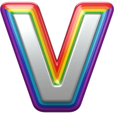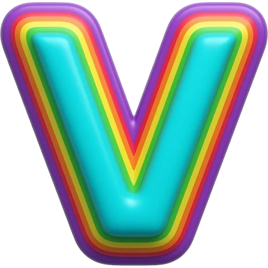Letter "V" in bright blue teal green 3D style typography lettering, each color of the rainbow as a border outlined around each letter, isolated, 3d rendering, no emoji icons no emoji faces and must have no human figures emoji | AI Emoji Generator
