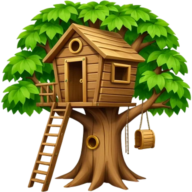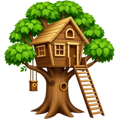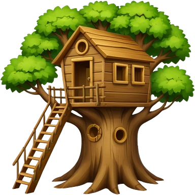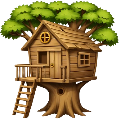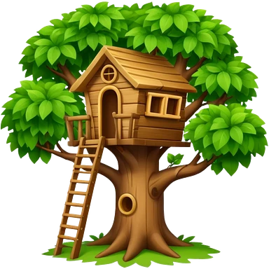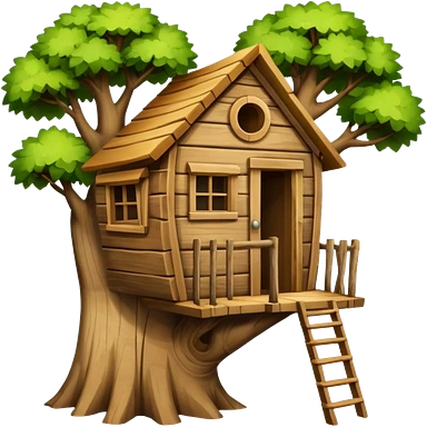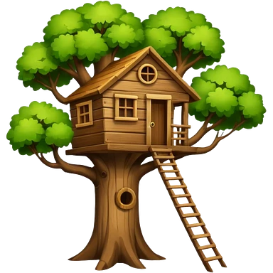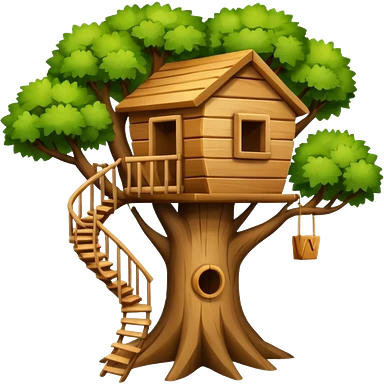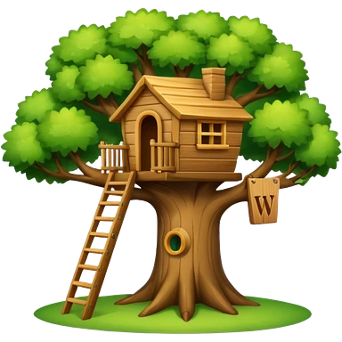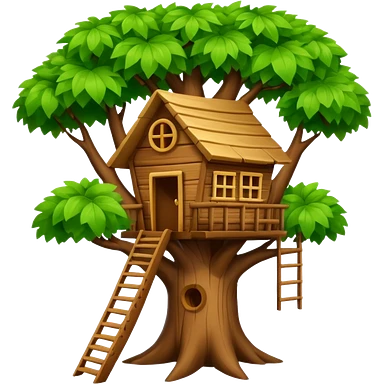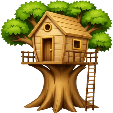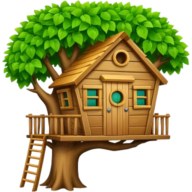 letter W on the side wall of a treehouse with an emerald green door, in a tree emoji | AI Emoji Generator