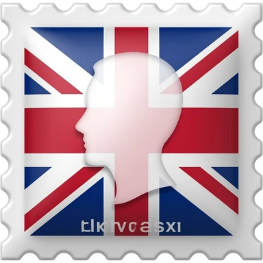 British postage stamp with royal silhouette and Union Jack emoji