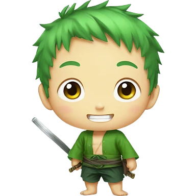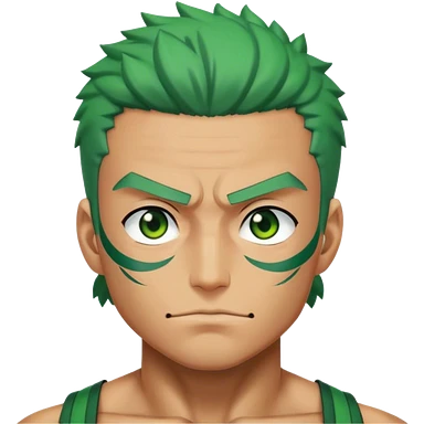 Roronoa Zoro with green hair, three swords, white shirt, green haramaki emoji