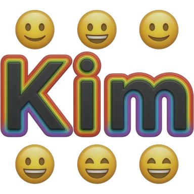 Exact name "Kim" in black typography lettering, each color of the rainbow as a border outlined around each letter, isolated, 3d rendering, no emoji icons no emoji faces and must have no human figures emoji