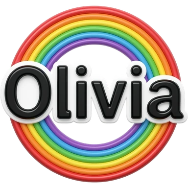 name "Olivia" in black typography lettering, each color of the rainbow as a border outlined around each letter, isolated, 3d rendering, no emoji icons no emoji faces and must have no human figures emoji