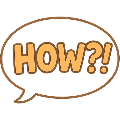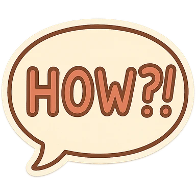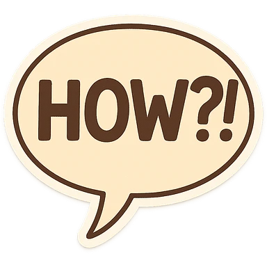 Letters in a big speech-bubble reading "HOW?!" emoji