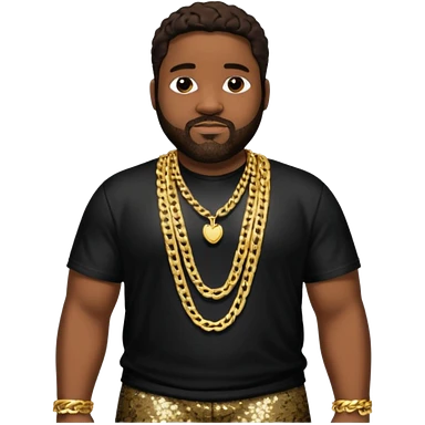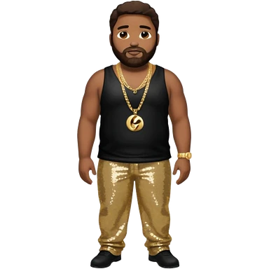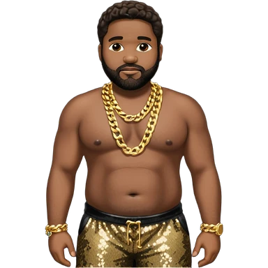 Gerald Levert with dark brown hair, black sequin baggy pants, shirtless with necklace emoji